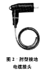終端頭、雙通套管、帶電指示器和不銹鋼箱組成,采用結(jié)構(gòu)緊湊的全封閉設(shè)計(jì),電纜完全處于全密封狀態(tài),須先拆除電纜封帽、堵蓋露出金屬雙頭螺桿才能驗(yàn)電。以往拆電纜頭前都未驗(yàn)電,而僅通過觀察帶電顯示器來判斷電纜是否帶電(規(guī)程L1中未明文規(guī)定),若帶電顯示器發(fā)生故障而又無其它安全保護(hù)措施,則會(huì)危及檢修人員的安全。雖然國內(nèi)多個(gè)廠家針對電纜分支箱、箱式變及環(huán)網(wǎng)開關(guān)柜制作的肘型接地電纜接頭(見圖2)可用來完成最后的接地工作,但無法做到之前電纜頭拆除工作的安全保護(hù),也就無法完成完整的技術(shù)措施。而本文研制的電纜分支箱驗(yàn)電接地工具(見圖3)就圓滿解決了該問題,可完成電纜分支箱停電工作時(shí)必須實(shí)施的一系列安全技術(shù)措施,保障檢修人員的人身安全。