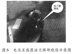 1)兩次擊穿均發生在電壓互感器法蘭根部,闡明與法蘭根部電場過于集中有關。正常工作條件下,在挨近帶電T處有絲絲電暈放電聲,標明電壓互感器電場不均勻,如圖6所示。