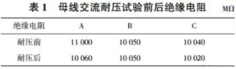交流耐壓試驗值為出廠的80%,即 76 kV,耐壓時刻為1 min,耐壓進程中無擊穿、閃絡和反常動靜,試驗前后絕緣電阻見表1。