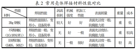 環(huán)網(wǎng)柜焊接氣箱常用材料首要有20g鋼板、不銹鋼板(1Cr18Ni9Ti)、防銹鋁板(5A05,5052)等。其功用對比見表2。