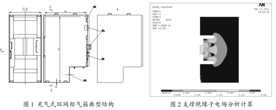 高壓帶電體對地最小空位處在支撐絕緣子上,經(jīng)過核算支撐絕緣子的電場如圖2,滿足電場請求,終究招認對地最小空位。根據(jù)最小空位準繩招認氣箱外形標準(L1xW1xH1)。