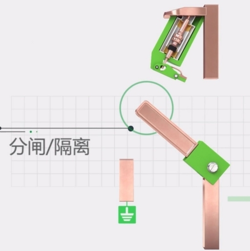 當(dāng)電流開(kāi)斷終了后,動(dòng)觸頭開(kāi)釋樞軸桿,并使其繼續(xù)旋轉(zhuǎn)至阻隔方位。在緩沖繃簧的作用下,樞軸桿回來(lái)初始方位,然后閉合真空滅弧室。