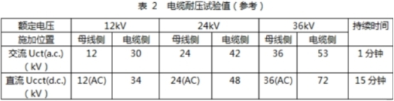 在與電纜聯(lián)接的每一極上依次施加額外電纜試驗(yàn)電壓Uct(a.c.)或Uct(d.c.), 其他非試極電纜應(yīng)接地。a)與b)的試驗(yàn)電壓應(yīng)一起施加。