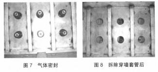 上述均為硬聯接辦法發生的應力直接作用于穿墻套管,而穿墻套管為環氧樹脂資料,是悉數聯接件中最為單薄的部分,其很或許會直接因所發生的應力而發生碎裂,從面導致漏氣現象發生。針對上述存在的問題,現改進如下: