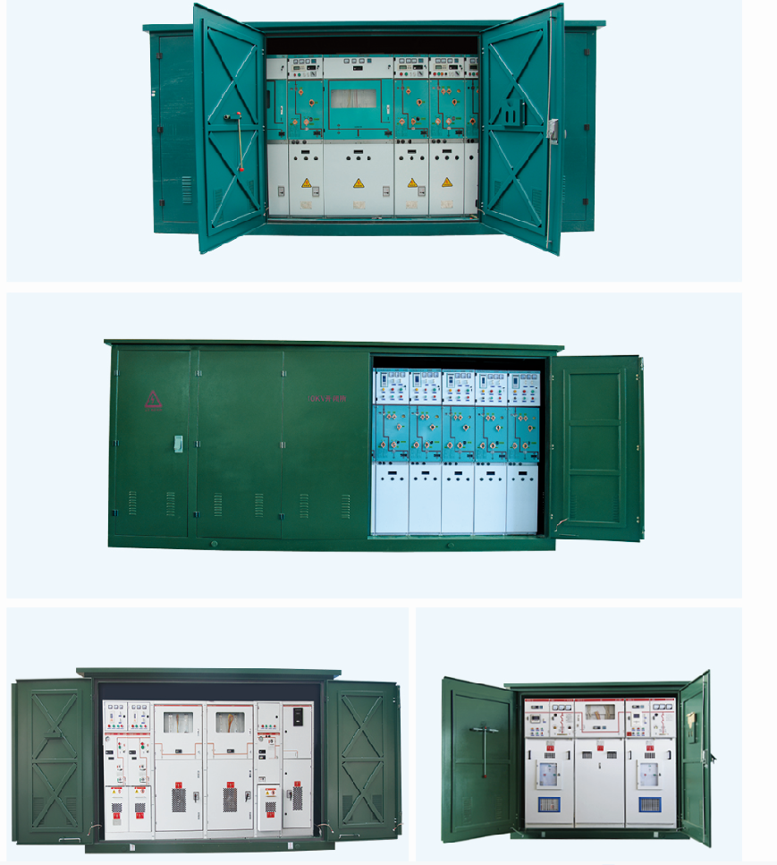 14、箱式開閉所結(jié)構(gòu)具有防止內(nèi)部故障燃弧時發(fā)生傷害操作人員人身的功能:隔室有金屬隔板,防止事故擴展;氣室有壓力釋放區(qū);柜體后部有壓力釋放板。